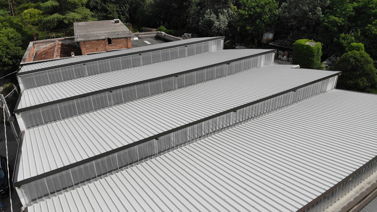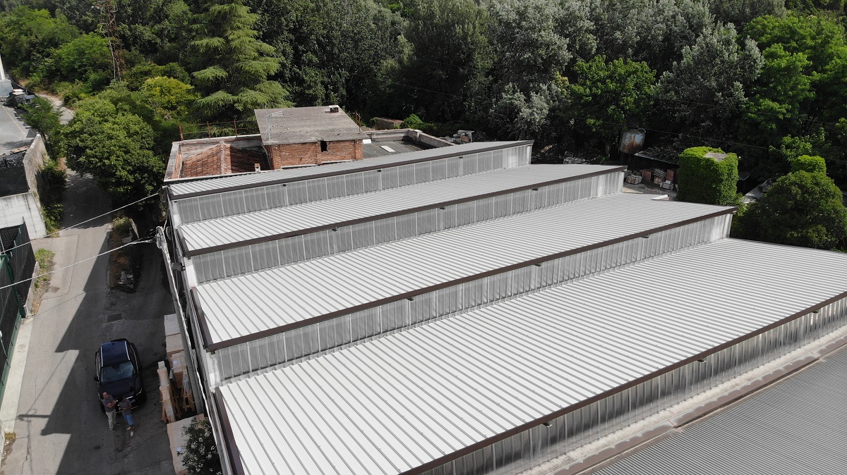 Sono stati anche sostituiti i vecchi lucernari verticali in vetroresina con dei nuovi in policarbonato alveolare.