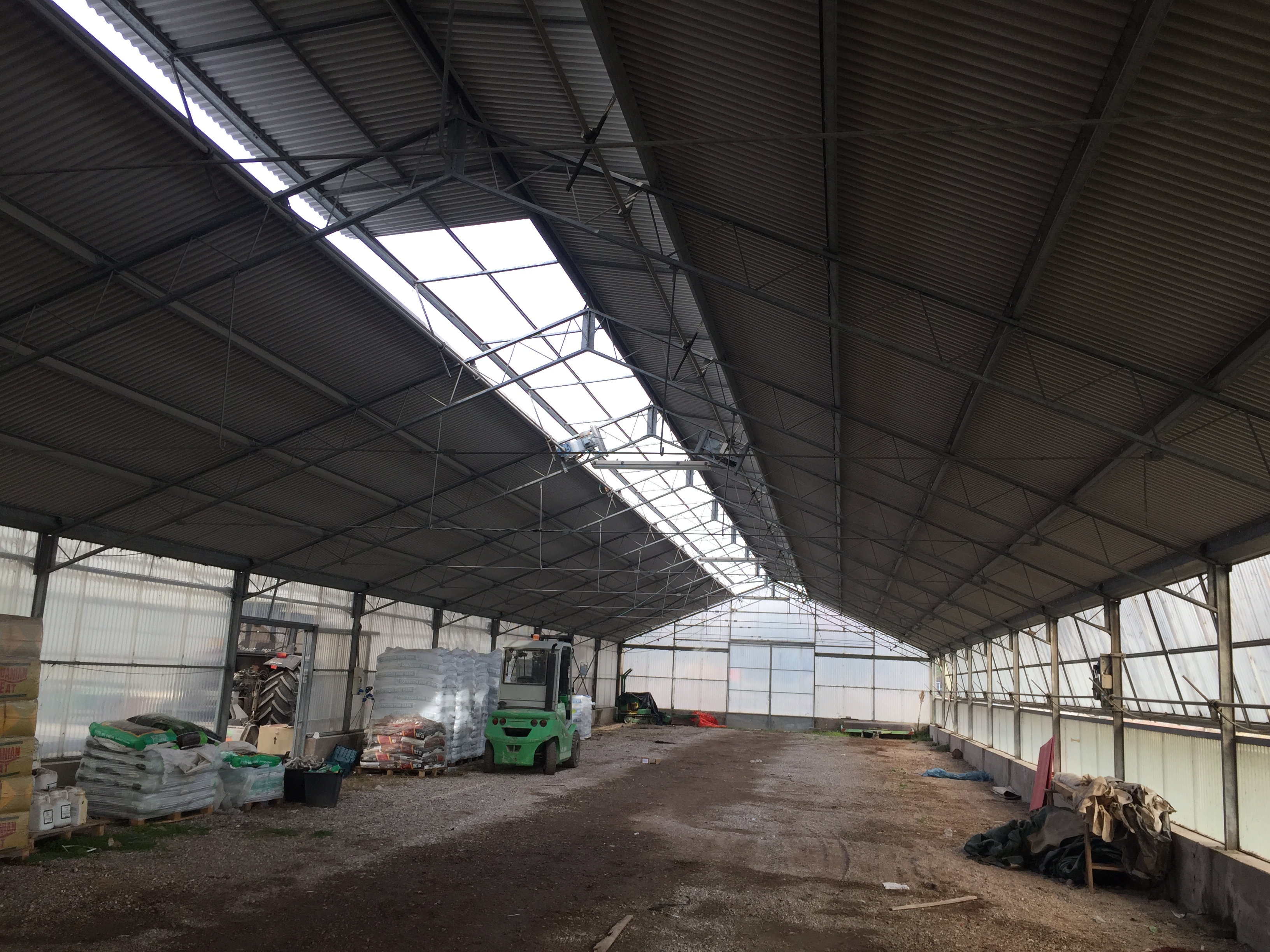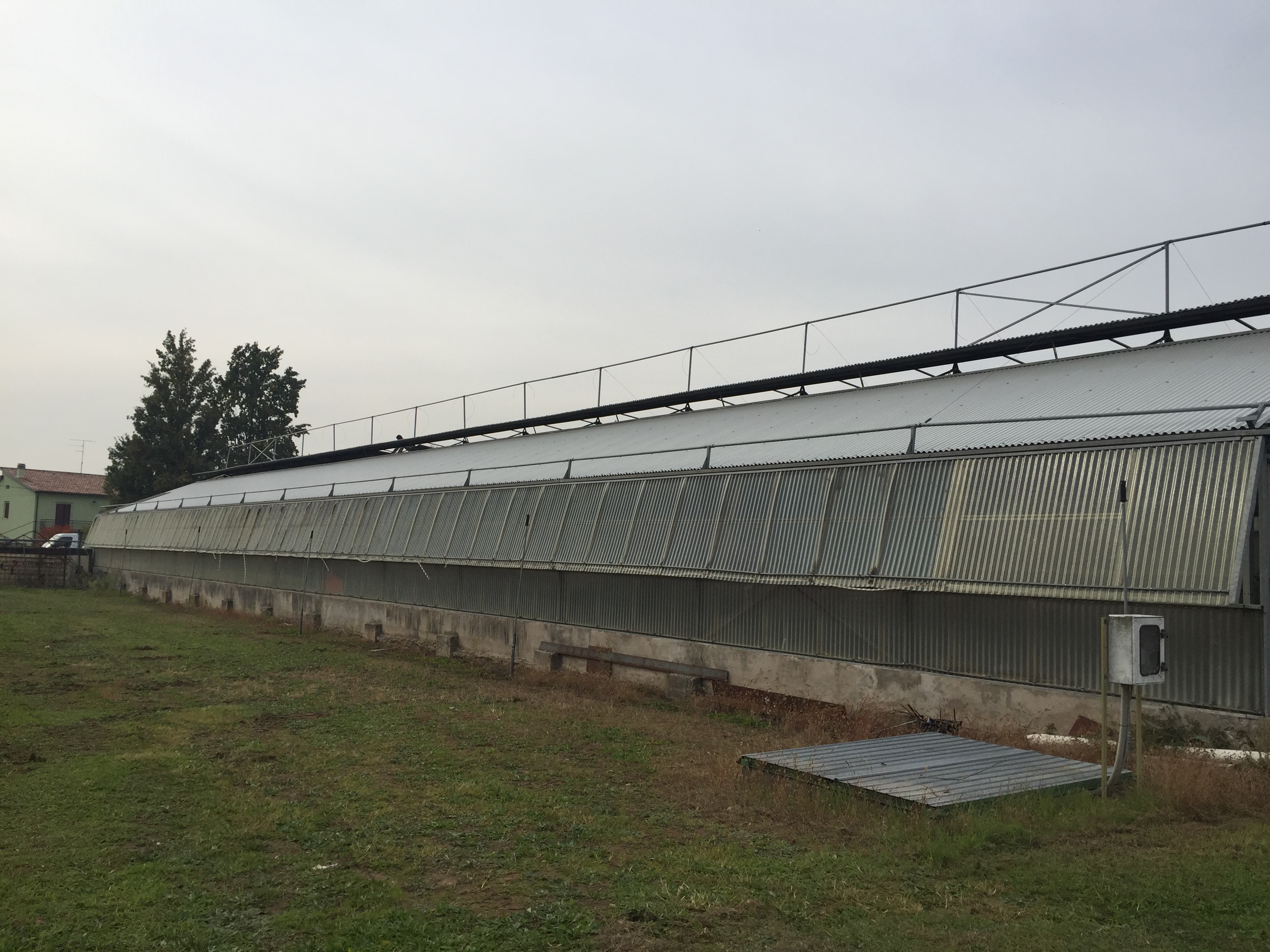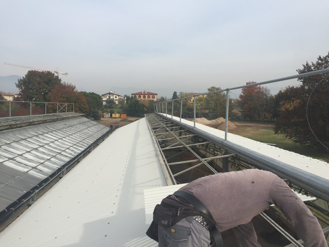 Rimozione di vecchia copertura in lastre di vetroresina della vecchia serra con fornitura e posa di nuove lastre lamiera con panno anticondensa.